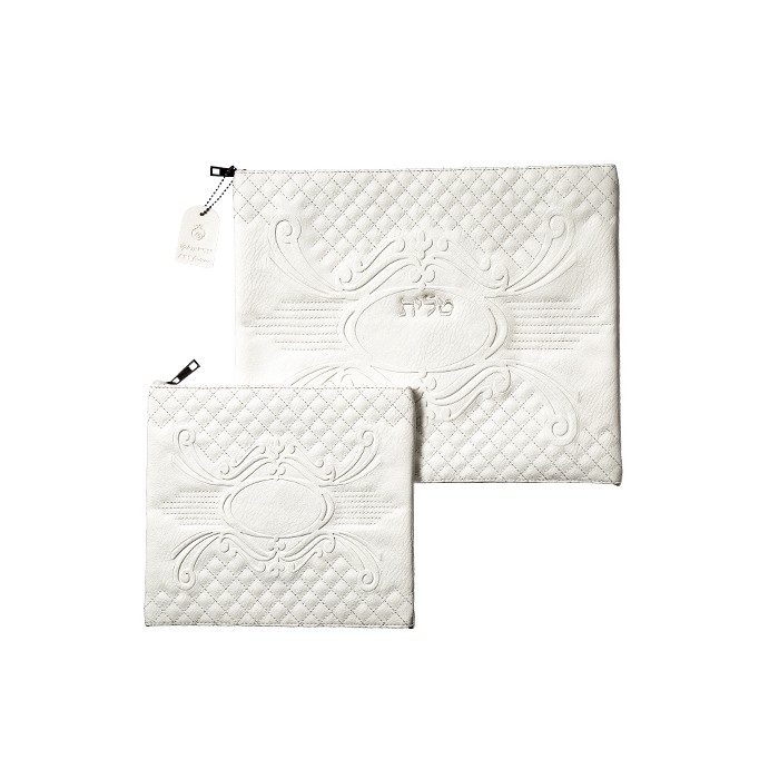 Ensemble de pochettes de talit et tefilines coloris blanc en PVC.