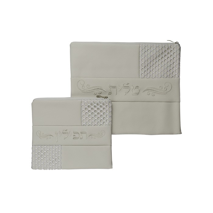 Set grande pochette et deux petites pochettes de tefilines (Rachi et Rabenou Tam), couleurs noir et gris, motif 770, Impala