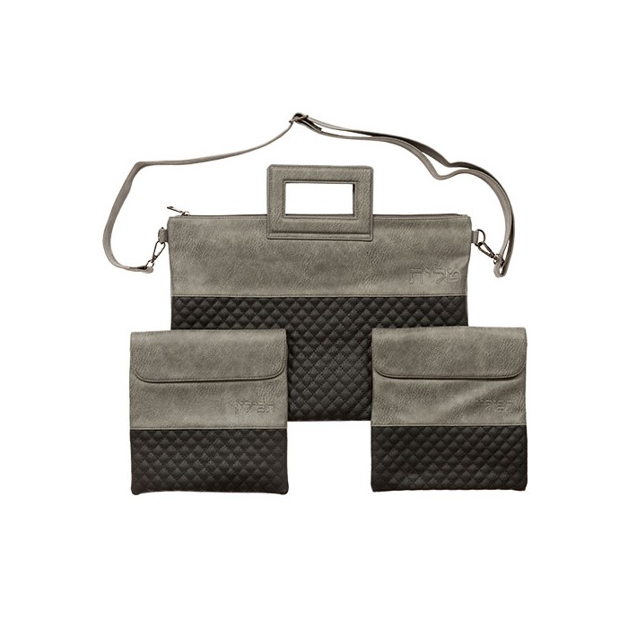 Set grande pochette et deux petites pochettes de tefilines (Rachi et Rabenou Tam), couleurs noir et gris, motif 770, Impala