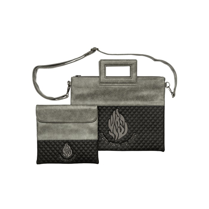 Pochette de tefilines (Rachi), couleur noir et blanc cassé, motif bande diagonale, Impala