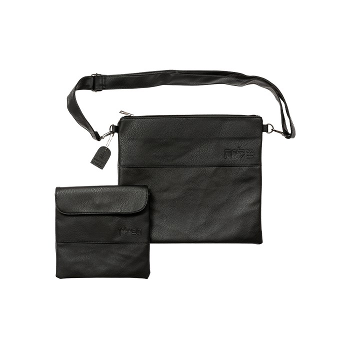 Ensemble de pochettes de talit et tefilines coloris noir en PVC.