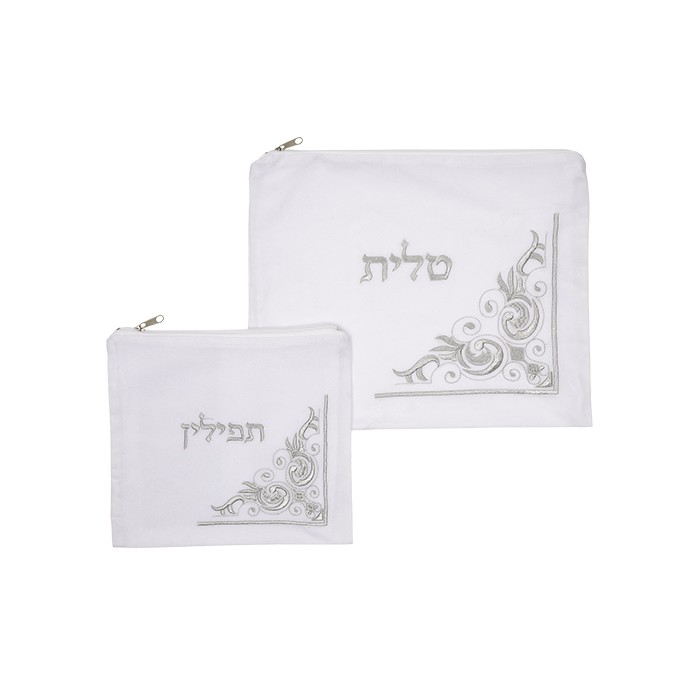 Set pochettes talit et tefilines (Rachi et Rabenou Tam) cuir véritable, couleur gris, modèle 770. Judaica Leather.