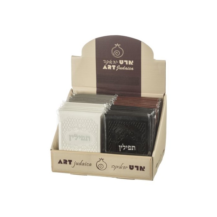 Set pochettes talit et tefilines cuir véritable, couleur noir broderie "Haech Cheli". Judaica Leather