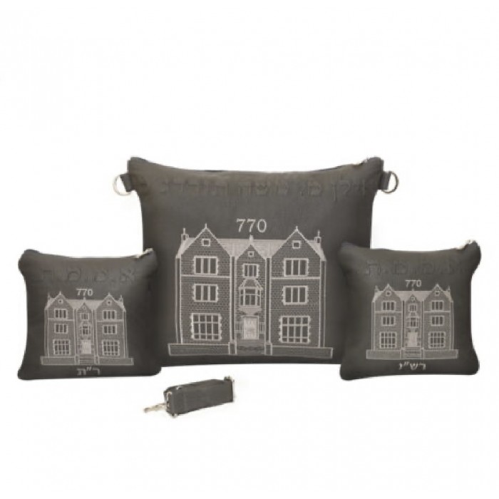 Set pochettes talit et tefilines (Rachi et Rabenou Tam), couleurs gris et noir, motif 770, Impala