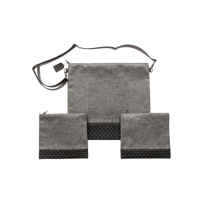 Set de deux petites pochettes de tefilines (Rachi et Rabenou Tam), couleurs noir et gris, motif 770, Impala