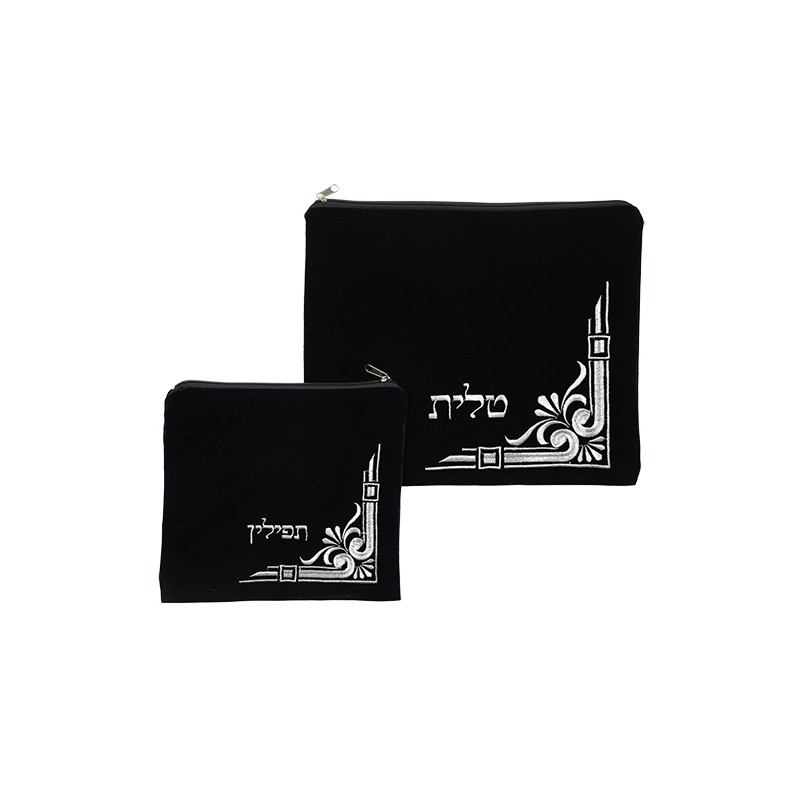 Set grande pochette et deux petites pochettes de tefilines (Rachi et Rabenou Tam), couleurs noir et gris, motif 770, Impala