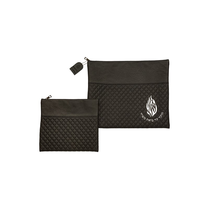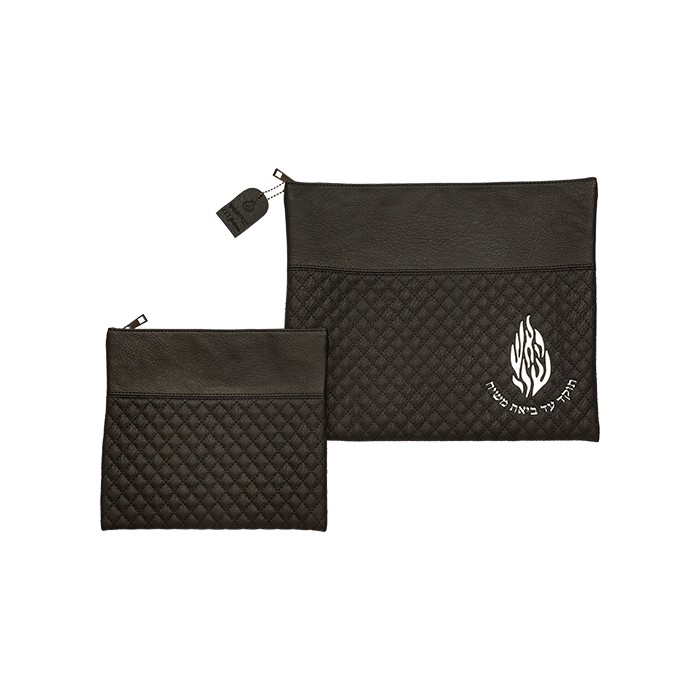 Set pochettes talit et tefilines cuir véritable, couleur noir et gris, IMPALA.