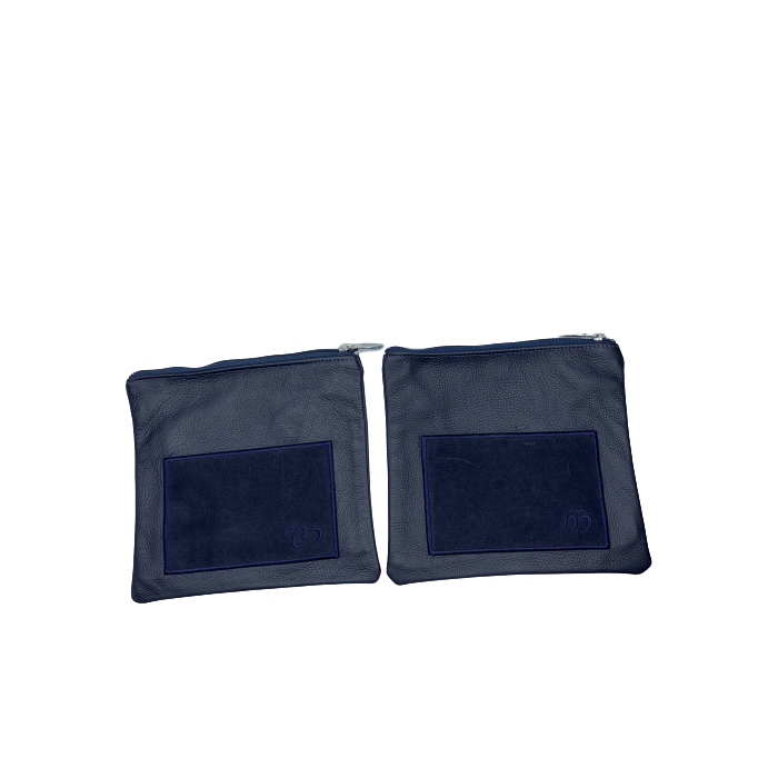 Set pochettes tefilines cuir véritable, couleur bleue, PRESTIGE.