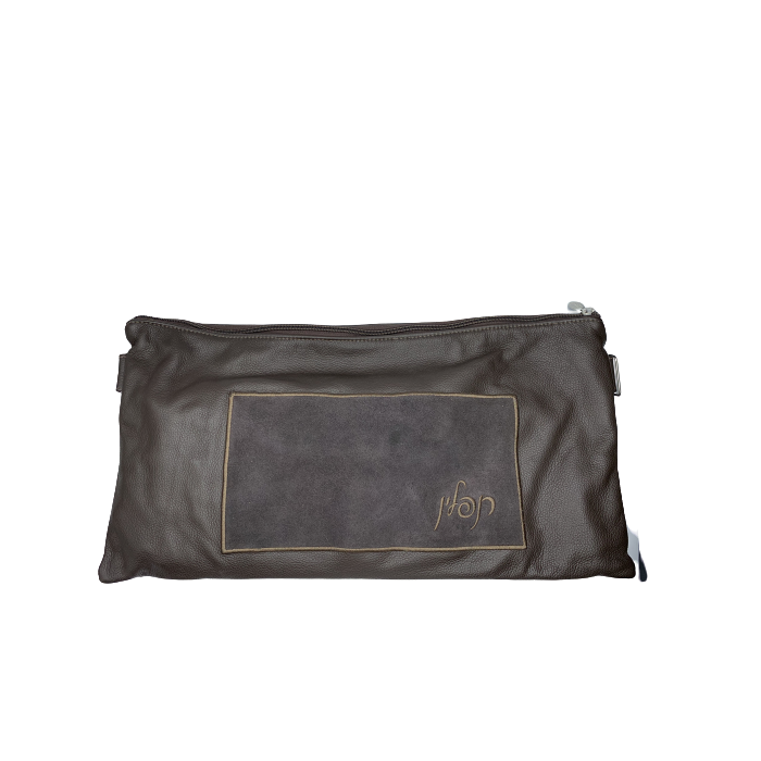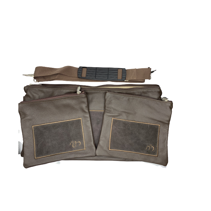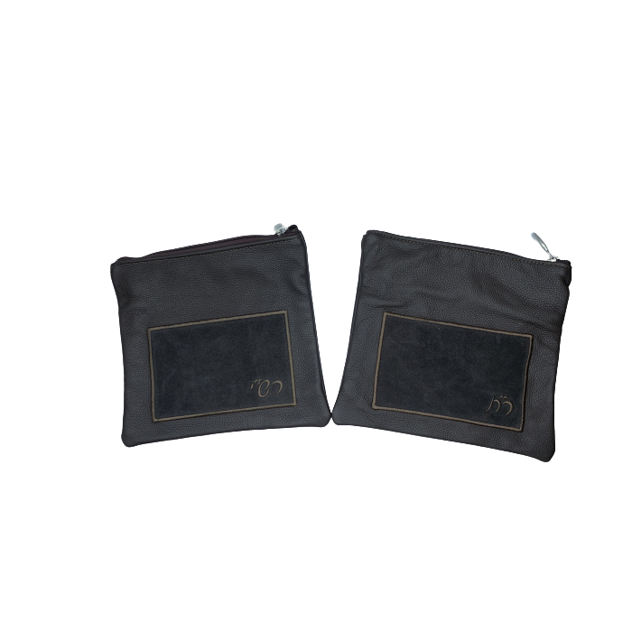 Set pochettes talit et tefilines (Rachi et Rabenou Tam) cuir véritable, couleur bleu et broderie argent, modèle 770. Judaica Leather.