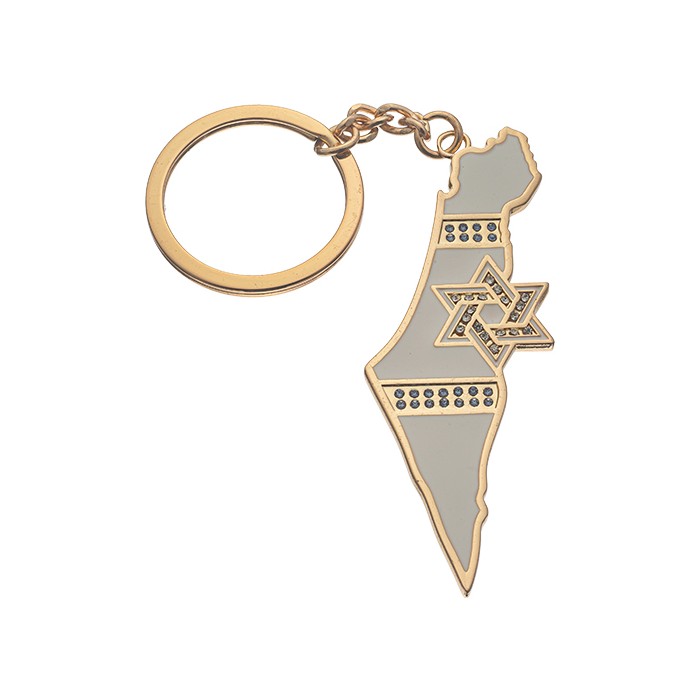 Porte clé carte d'Israël et Maguen David métal et brillants