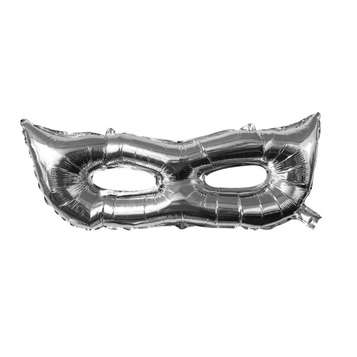 Décoration gonflable géante de Pourim en forme de masque, coloris argent. Dimensions 80*100cm.