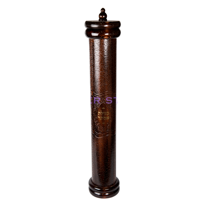 Boitier mezouza simili cuir, pour parchemin 38cm, Art Judaica.