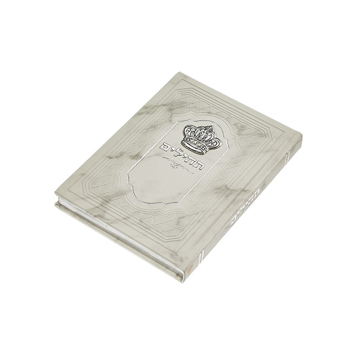 Livre de Tehilim (Psaumes de David) simili cuir, couronne en métal, coloris blanc marbré.