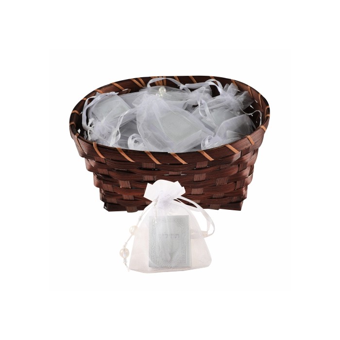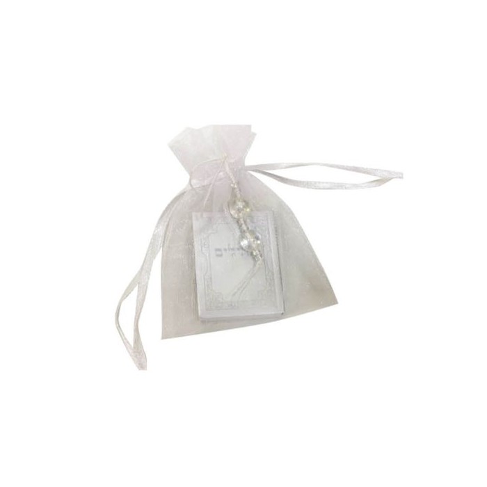 Mini Tehilim en hébreu, dimensions 3*4cm, coloris argent. Livré dans une pochette organza.