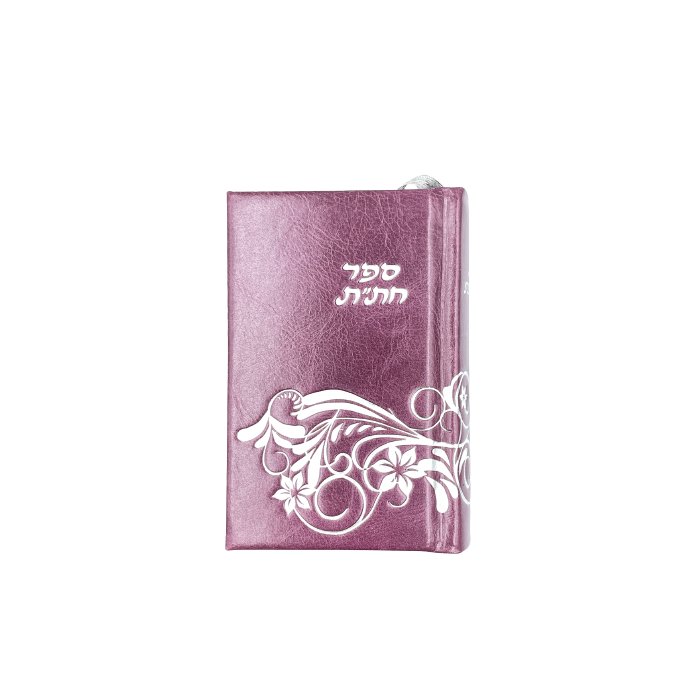 Hitat couverture cuir véritable, coloris aubergine, modèle fleurs
