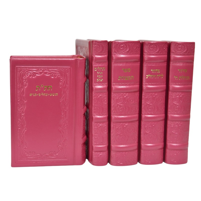 Set de cinq livres en cuir véritable : hitat, sidour, tehilim, sefer hamitsvot, mahzor roch hachana/kippour