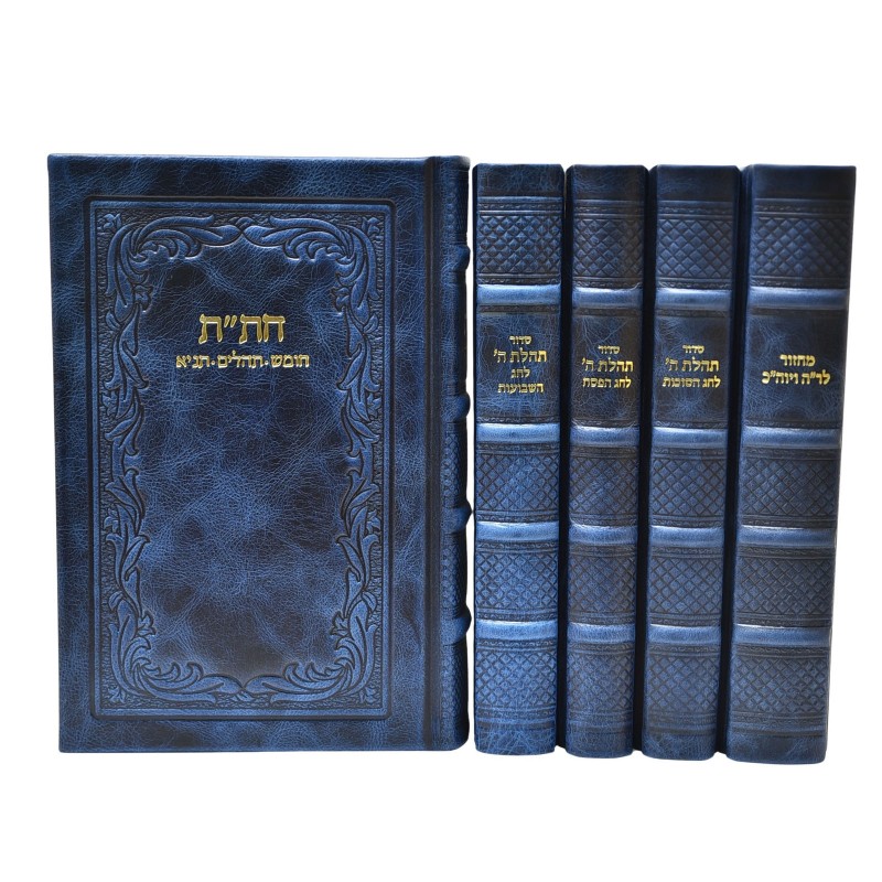 Set de cinq livres en cuir véritable : mahzor de roch hachana/kippour, mahzor de souccot, mahzor de pessah, mahzor de chavouot, grand hitat