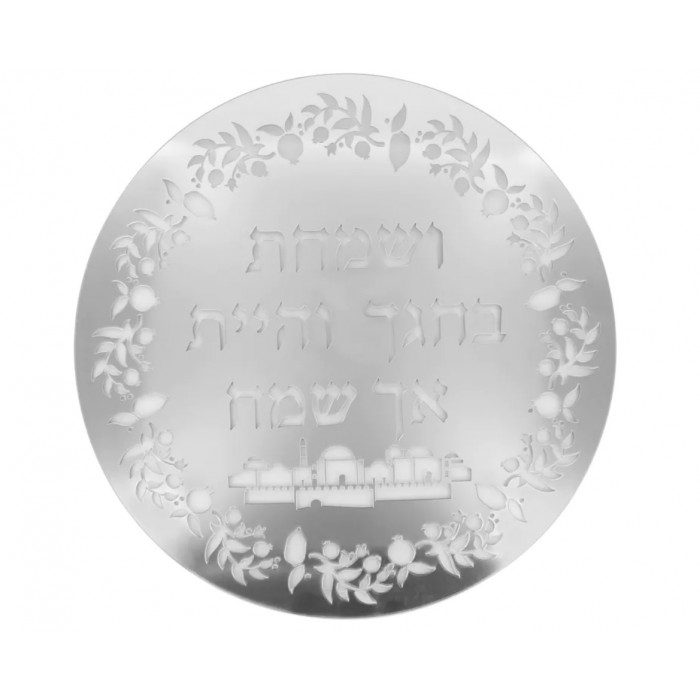 Décoration pour soucca en plexiglass découpage au laser au motif de Jérusalem, coloris argent, dimensions 40*40cm