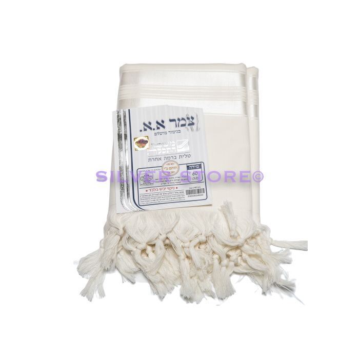 Talit guadol en laine blanc/blanc, tsitsit fait main séfarade, gros fils