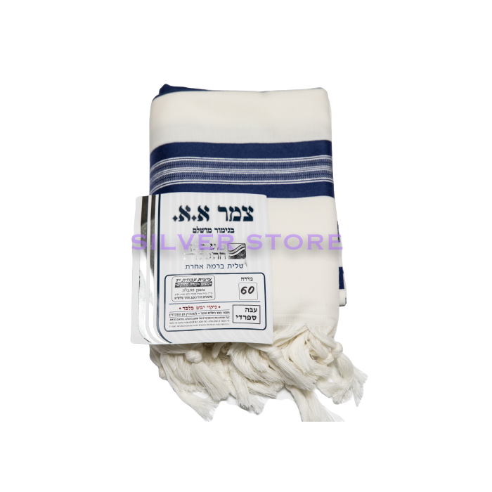 Talit guadol laine, blanc/argent. Fabrique Mishkane Hatechelet