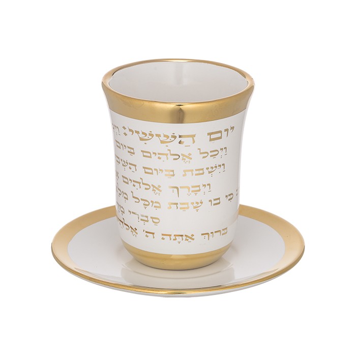 Verre de kidouch à pied et son assiette martelés en inox emmaillé, bande avec inscription Boré Peri Haguefen.