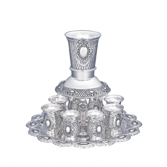 Fontaine à vin pour Kidouch en cristal, 8 verres. Hauteur 33cm. Coloris or.