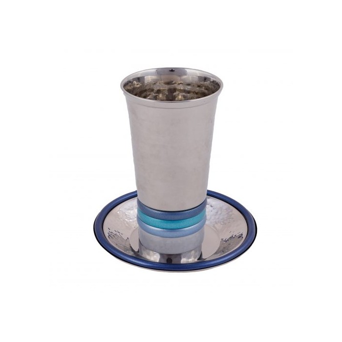 Verre de kidouch design martelé argent et bleu, Emanuel.