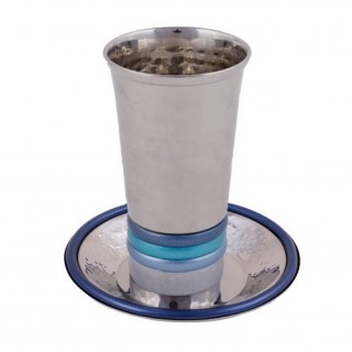 Verre de kidouch et son assiette en inox emmaillé, coloris beige. Hauteur 8,5cm.