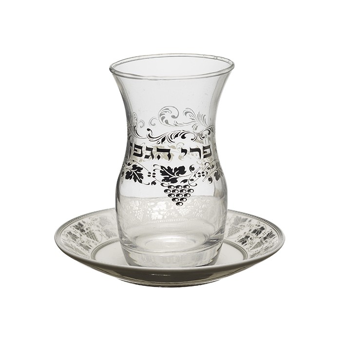 Verre de kidouch en verre, hauteur 21cm, coloris transparent et argent