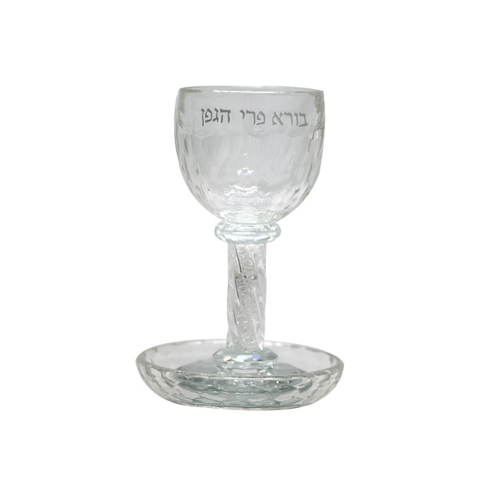 Coffret comprenant verre de kidouch, paire de bougeoirs et une salière, en cristal. Art Judaica.