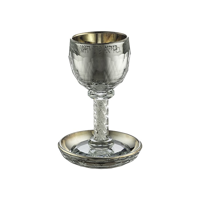 Fontaine à vin pour Kidouch en cristal, 8 verres. Hauteur 33cm. Coloris argent.