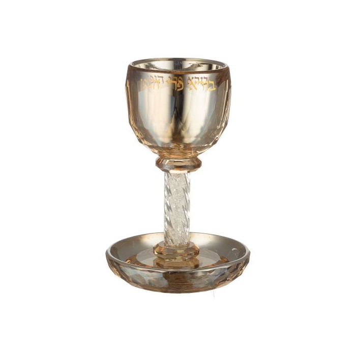 Verre de kidouch et son assiette martelés en inox emmaillé, bande avec inscription Boré Peri Haguefen.