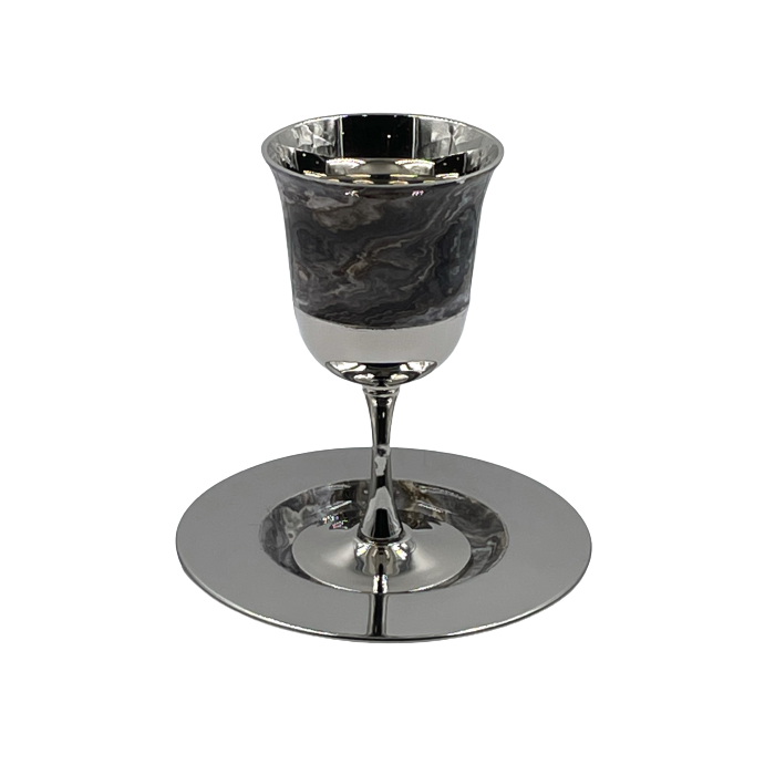 Verre de kidouch et son assiette en inox emmaillé, coloris gris clair. Hauteur 8,5cm.