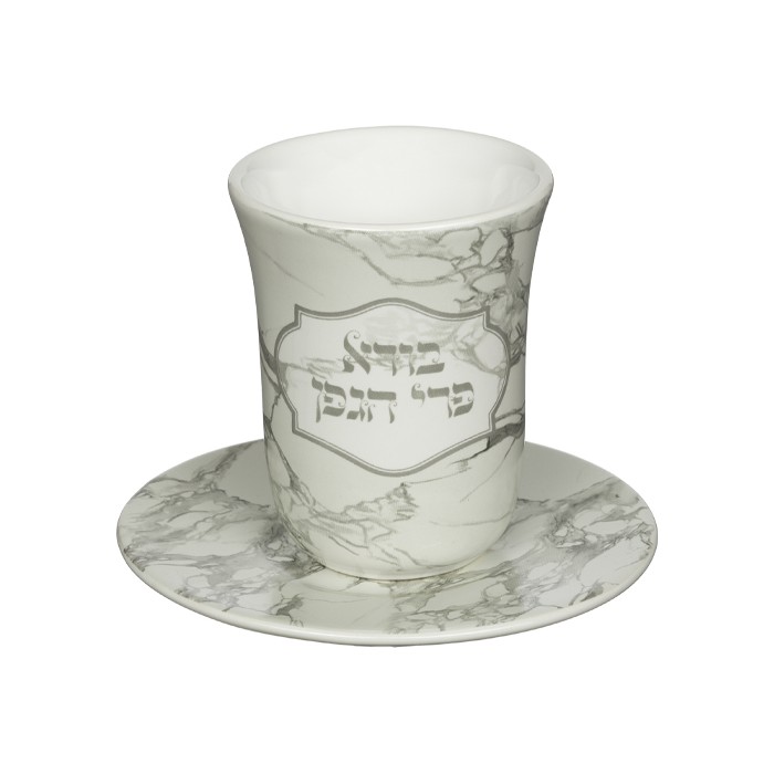 Verre de kidouch et son assiette en inox emmaillé, coloris gris foncé avec motif Jérusalem. Hauteur 8,5cm.