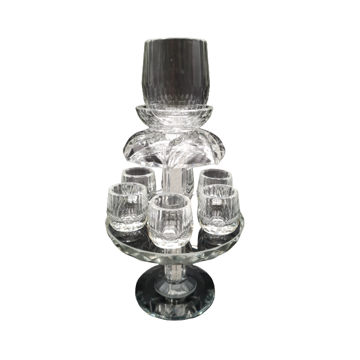 Coffret comprenant verre de kidouch, paire de bougeoirs et une salière, en cristal. Art Judaica.