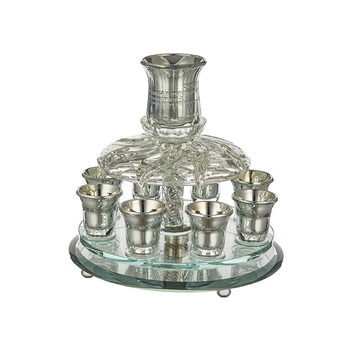 Fontaine à vin pour Kidouch en cristal, 8 verres. Hauteur 33cm. Coloris argent.