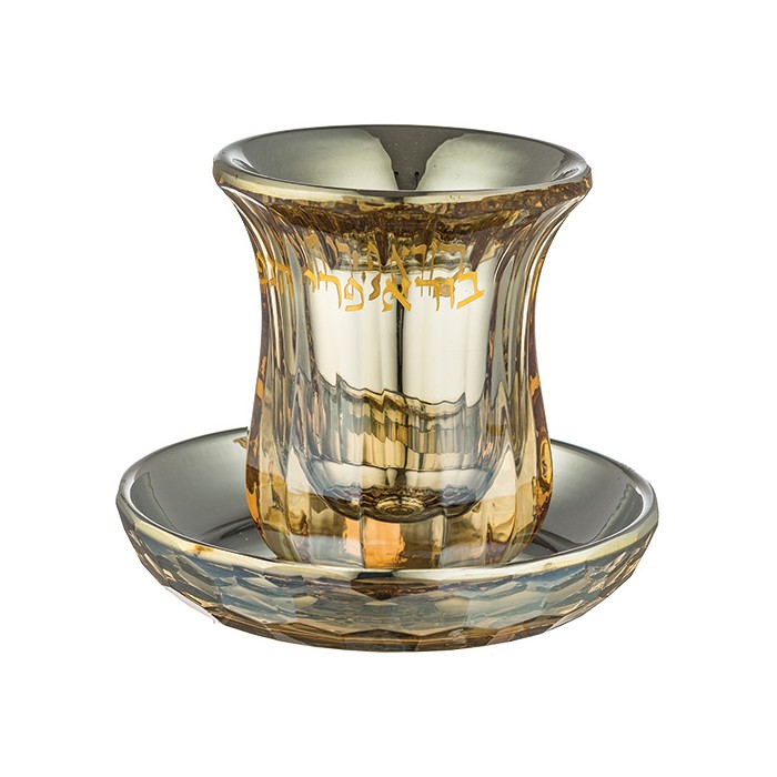 Verre de kidouch et son assiette en inox emmaillé, coloris beige. Hauteur 8,5cm.