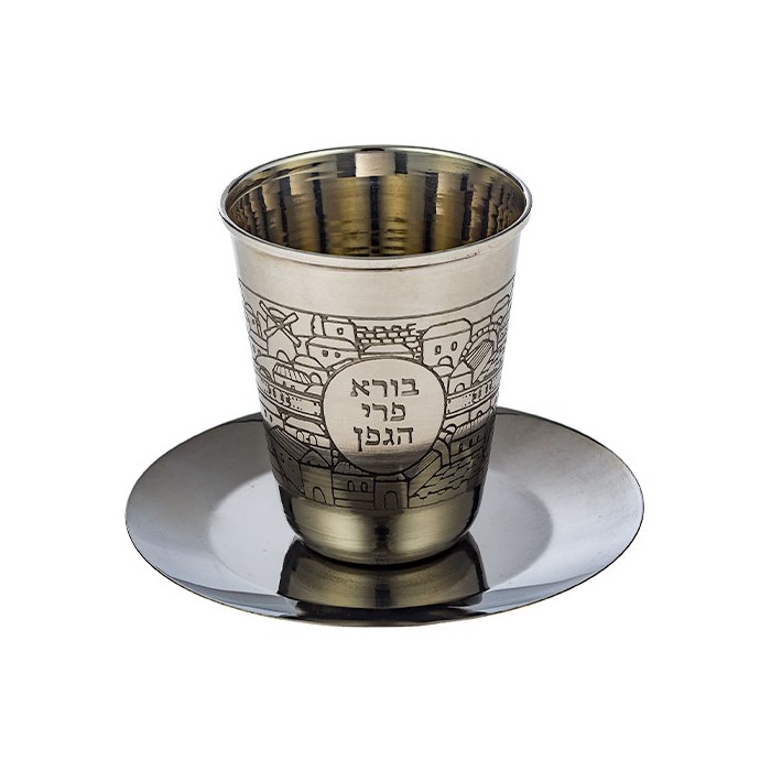 Verre de kidouch inox hauteur 8cm, motif Jérusalem.