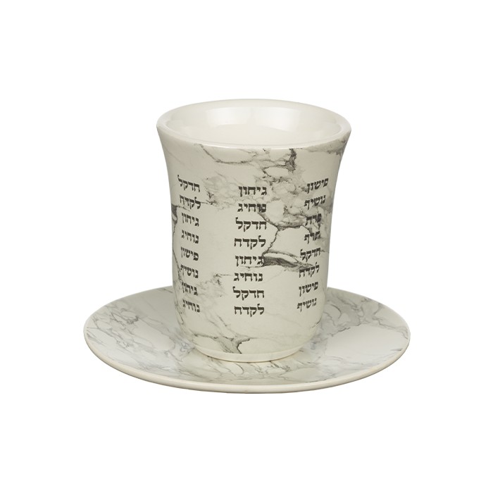 Verre de kidouch à pied métal émaillé, coloris gris clair. Hauteur 13,5cm.