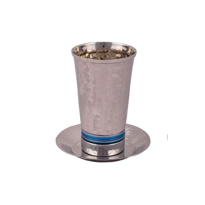 Verre de kidouch à pied métal émaillé, coloris gris clair. Hauteur 13,5cm.