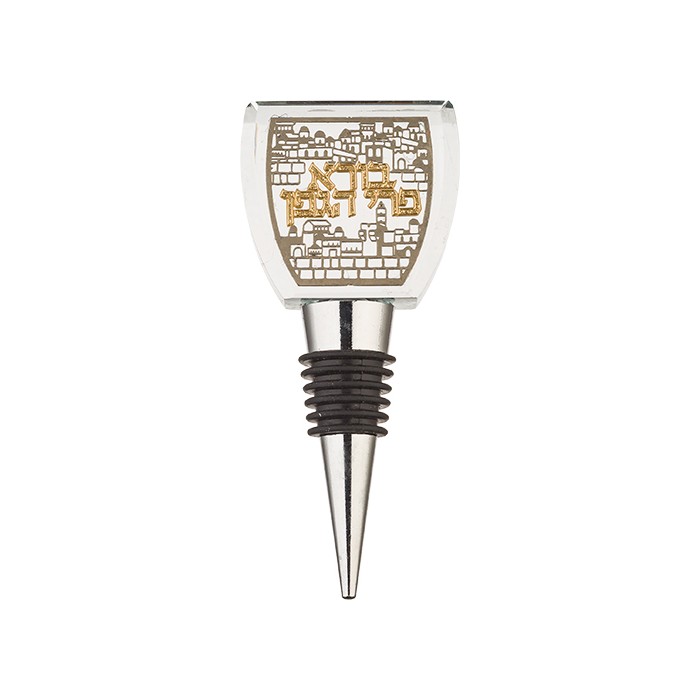 Coffret comprenant verre de kidouch, paire de bougeoirs et une salière, en cristal. Art Judaica.