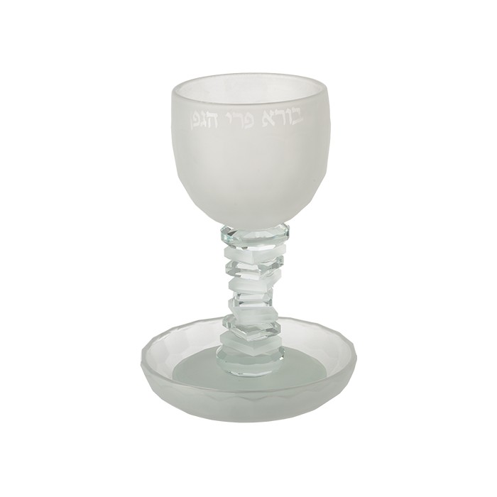 Verre de kidouch à pied métal émaillé, coloris gris clair. Hauteur 13,5cm.
