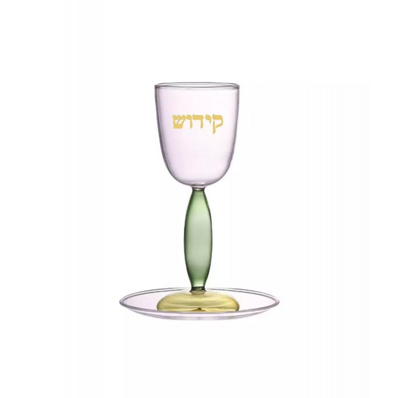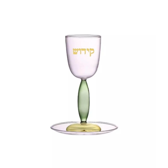 Coffret comprenant verre de kidouch, paire de bougeoirs et une salière, en cristal. Art Judaica.